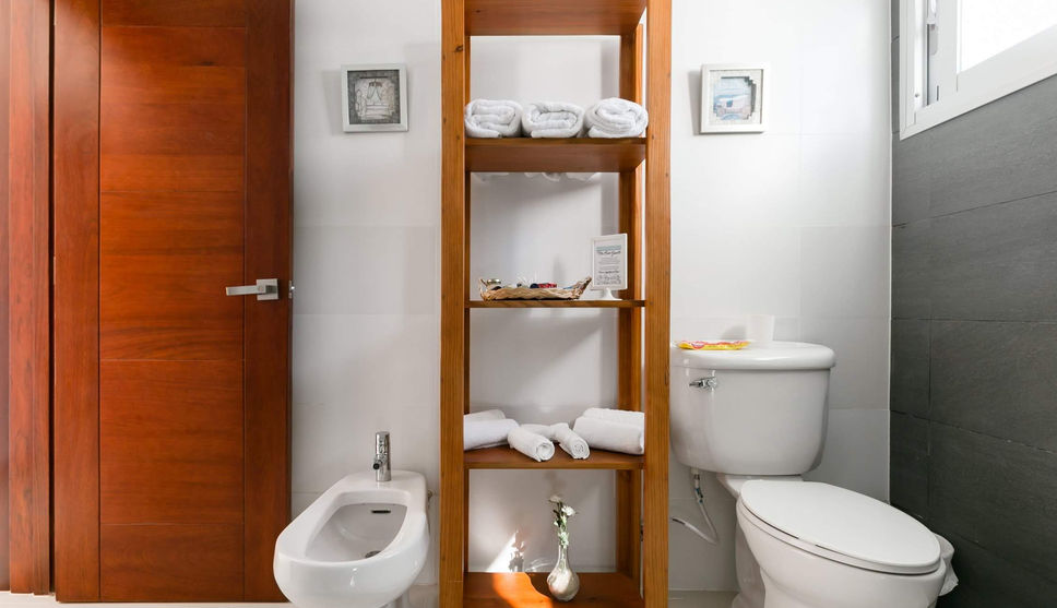 The second floor consists of 2 bedrooms, each with their own bathroom. The terrace off of the master bedroom is very spacious and has a large hot tub. The second bedroom has a smaller balcony perfect for getting some fresh air and watching sunrises and sunsets.